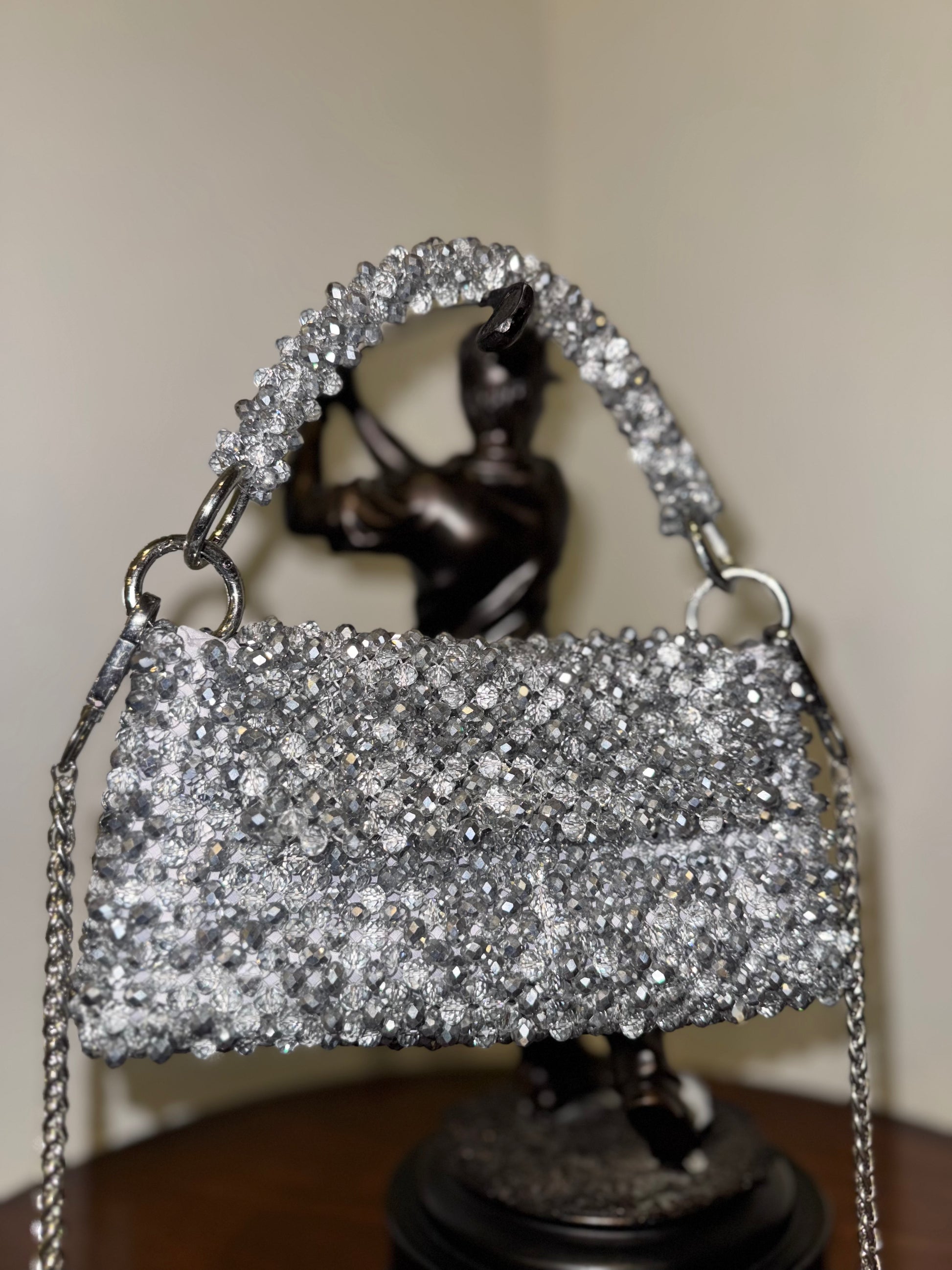 Stand out and add some glam to your look. Shine bright and sparkle with this bag.